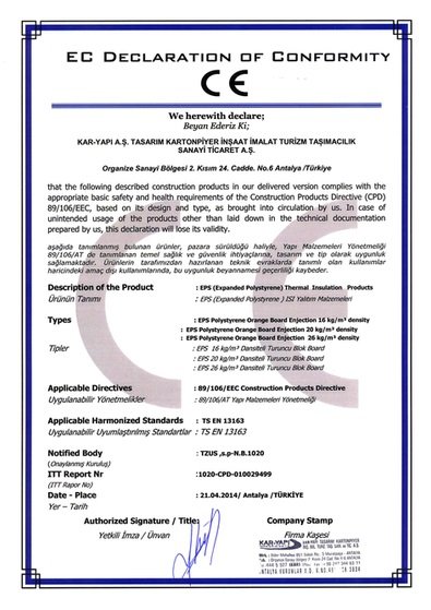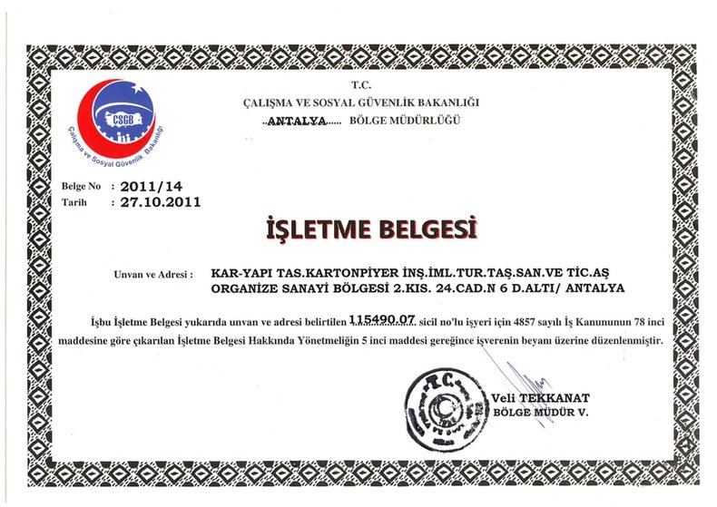 | CE BELGESİ KAR-PANEL | CE BELGESİ KAR-NEOPANEL | CE BELGESİ KAR-BOARD | +ASMOLEN UTO BELGESİ |